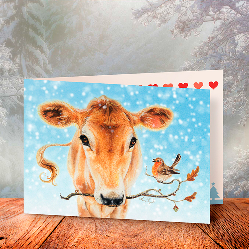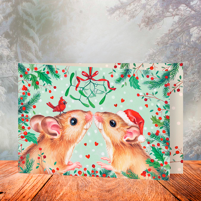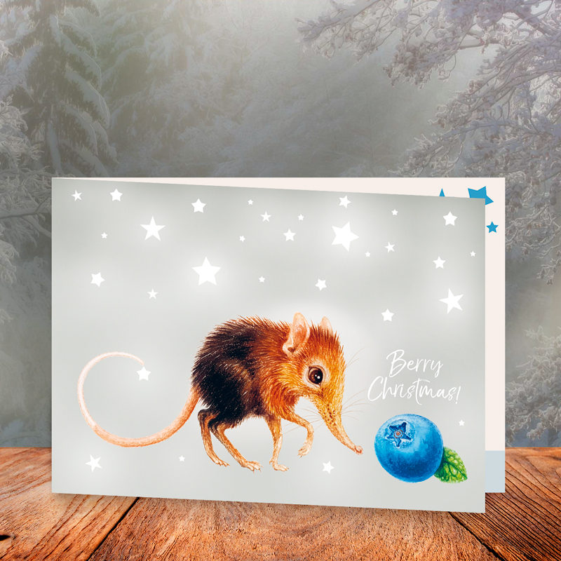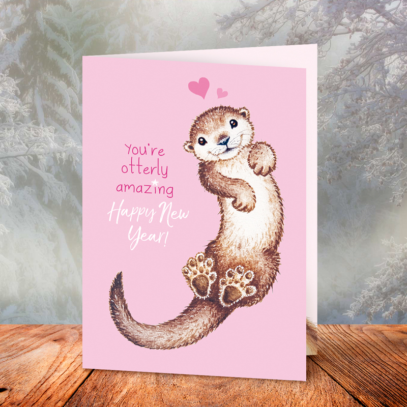 Op de lichtgrijze kaart staat “Berry Christmas” en op de roze kaart staat “You’re otterly amazing – Happy New Year!”.