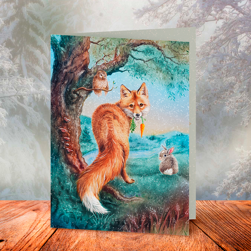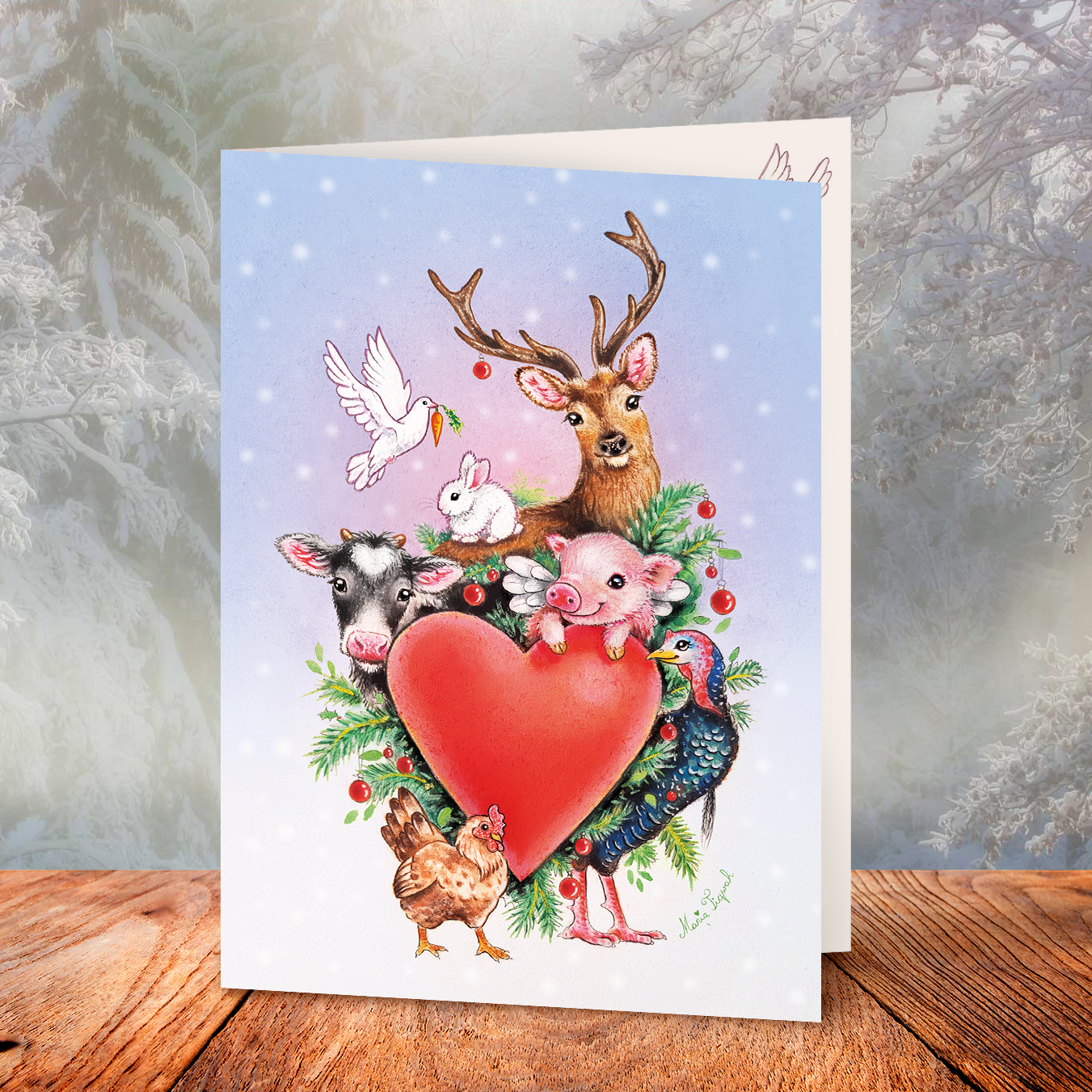 Set van 10 verschillende kaarten: 1 vierkante, 2 grote en 7 kleine. Met liefde getekend en zorg voor de natuur gedrukt.
